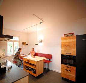 Das ungewöhnliche Mittelzentrum ohne Kochfeld in der Nürnberger Altbauwohnung kann man sich hier ganz genau anschauen.