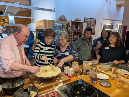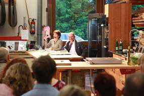 Schauen Sie am Samstag einfach rein (10 bis 16 Uhr), für ein Gläschen Schaumwein, ein paniertes Sellerie-, Weideschwein oder Saiblingschnitzel ist fast immer Zeit. Genießen und/oder kochen Sie mit uns in der höhenverstellbaren Küche. Gerne bieten wir auch Führungen in der schönsten Werkstatt Deutschlands (dds-Preis 2024) an.