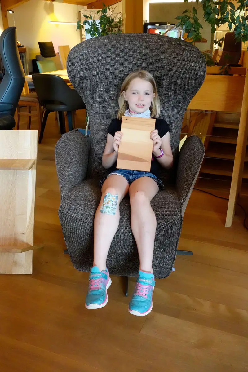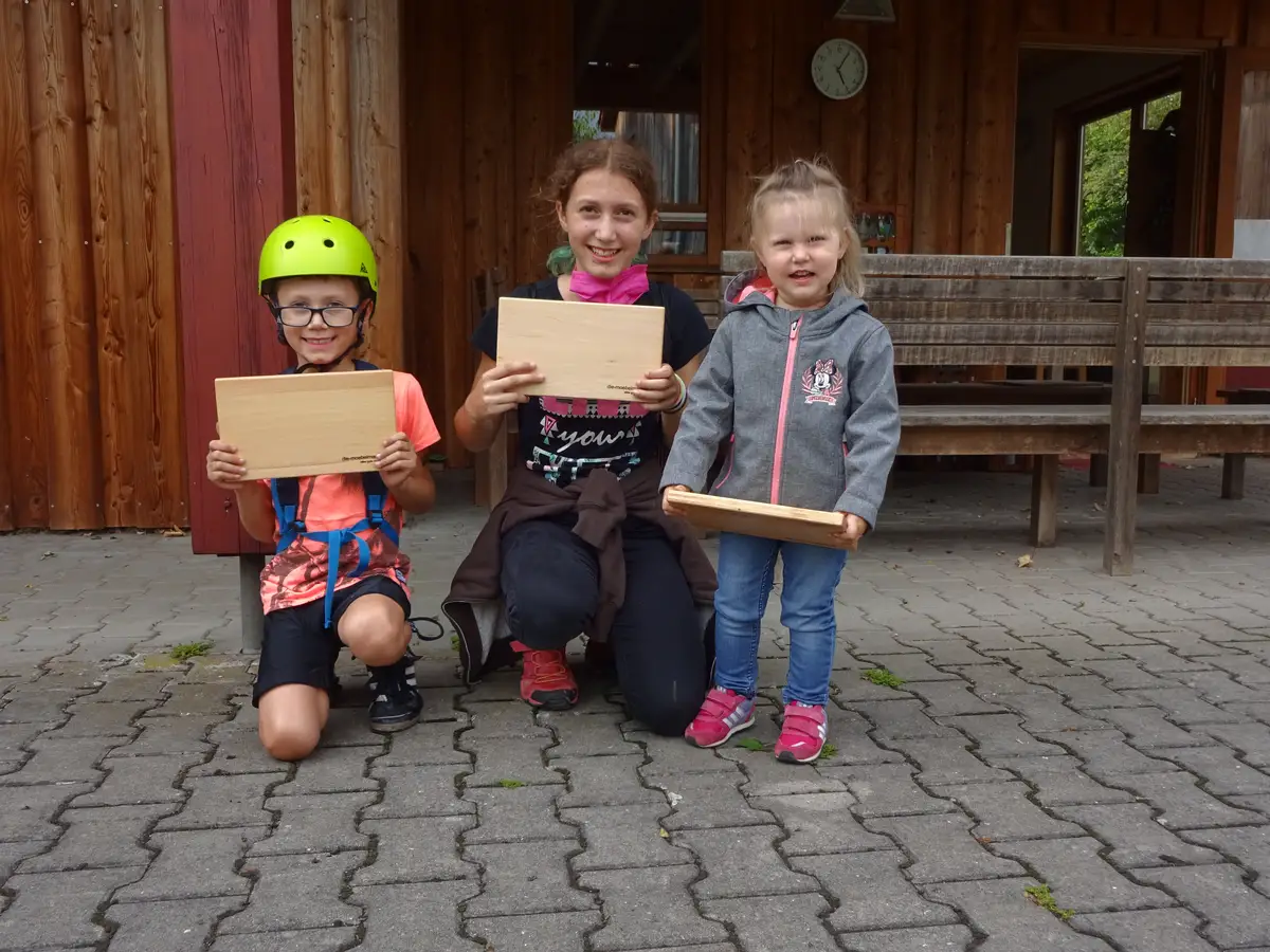 Einfach Fotos mit den Kindern machen und an uns schicken: info@die-moebelmacher.de. Wir belohnen mit einem Brotzeitbrettchen und – wenn Zeit ist – einer kleinen Führung durch unser Gelände