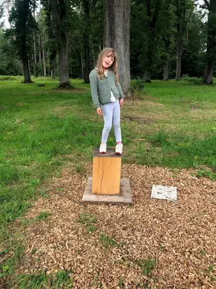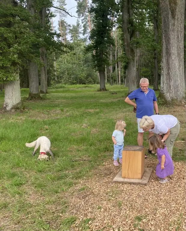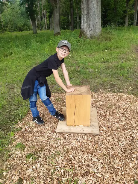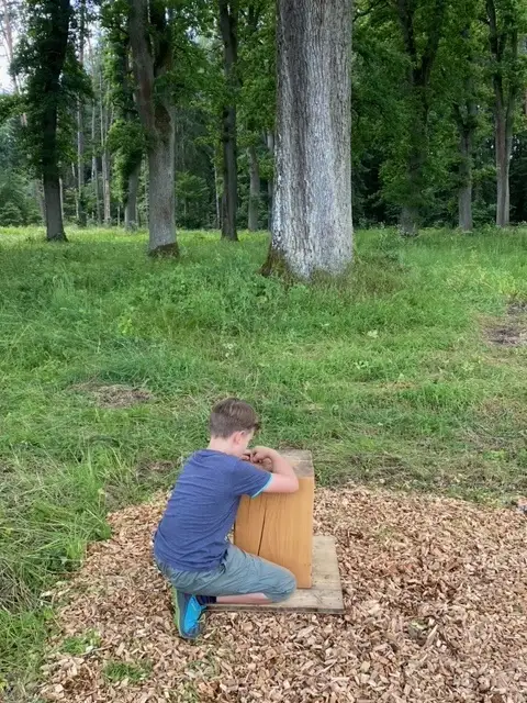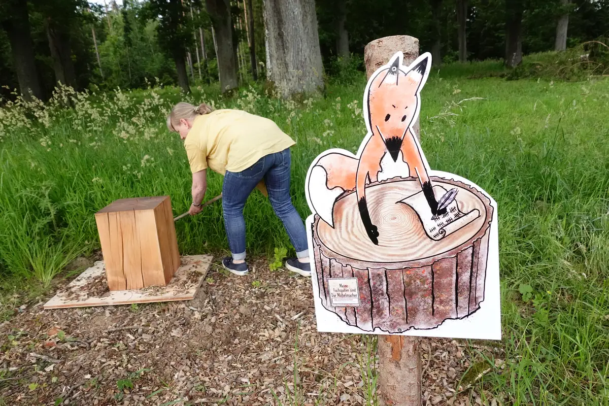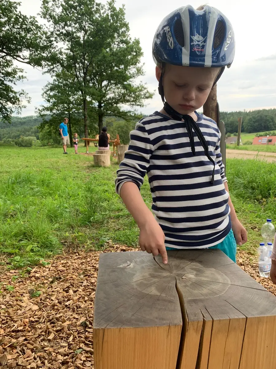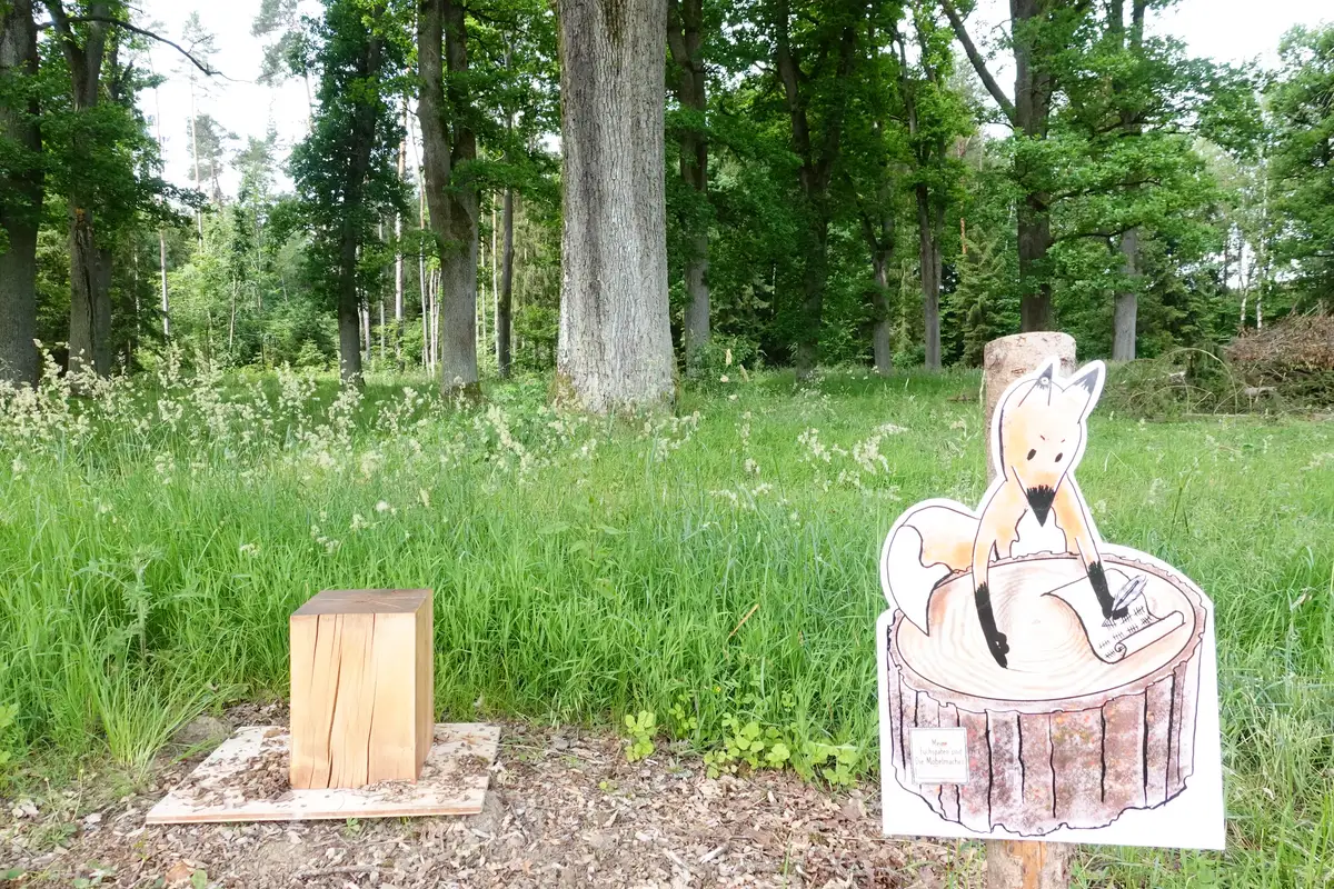 Liebe Möbelmacher, ich bin heute den Fuchsau-Rundweg mit Oma und Opa gegangen. Es war wirklich spannend die „Stimmen des Wassers“ zu hören, vom Biber angenagte Baumstämme zu berühren, in den Weihern große Libellen fliegen zu sehen, Bäume zu umarmen usw.. Natürlich habe ich auch bei Station 10 die Baumringe gezählt aber mehr wie bis zwölf kann ich noch nicht zählen. Opa (er meinte ihr kennt ihn?!) hat dann von mir ein Foto für Euch gemacht und sagte, ich kann mir dann irgend wann mal ein Brotzeitbrettchen (was ist das genau?) bei Euch abholen. Vielen Dank und bis bald!