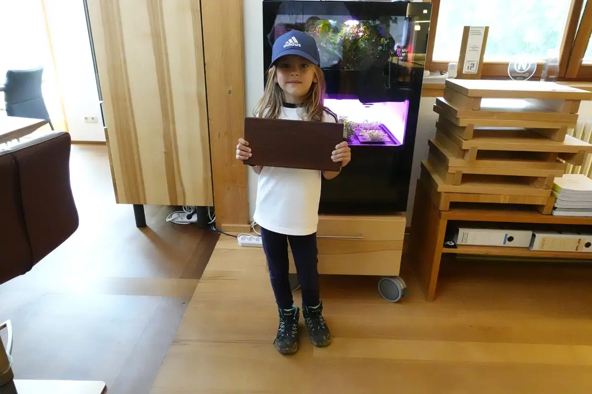 Wer uns ein Bild von unserer Station 10 - Jeder Ring ein ganzes Jahr - kann sich sein Brotzeitbrettchen abholen, so wie das Amina schon getan hat. Bitte auch mit kurzer Info, ob wir das Foto veröffentlichen dürfen oder nicht.