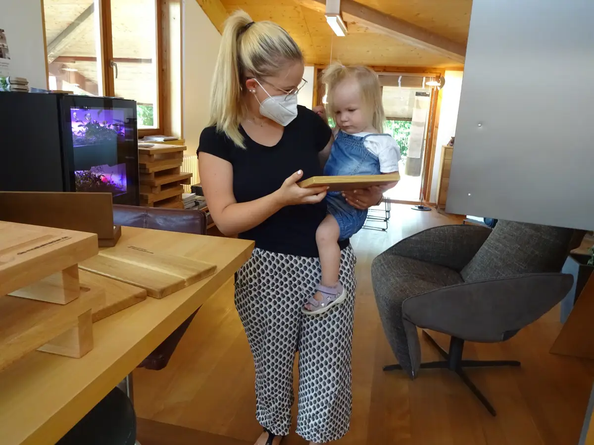Wir überreichen diese in der Hoffnung, dass Kinder nach der Führung durch unser Gelände, Werkstatt und Ausstellung ein Gespür dafür bekommen, wie man aus Bäumen der Hersbrucker Alb Möbel herstellt. Das sind nach unserer Überzeugung wertvolle Sinn-Zusammenhänge, die auch einigen Eltern nicht ganz vertraut sind. Wir wollen auf diesem Weg Verständnis für und Freude am Handwerk fördern, denn wir brauchen auch in der nächsten Generation Menschen, die nicht nur am Computer sitzen, sondern wertvolles Holz in die Hand nehmen und daraus echte Werte schaffen.