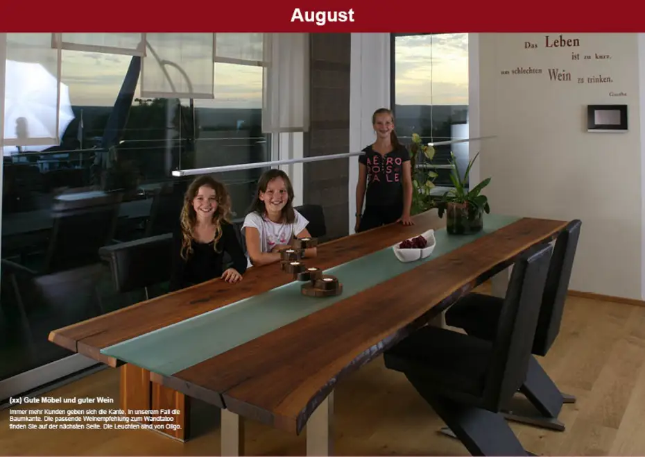 Auf 52 Seiten haben wir im Jahrbuch wieder mit 128 Fotos Wohnbeispiele demonstriert und hoffen, dass Sie bei Ihren nächsten Einrichtungswünschen vom Fußboden bis zur Beleuchtung, vom Sofa bis zur Matratze und von der Küche bis zum Hotelzimmer an uns denken.