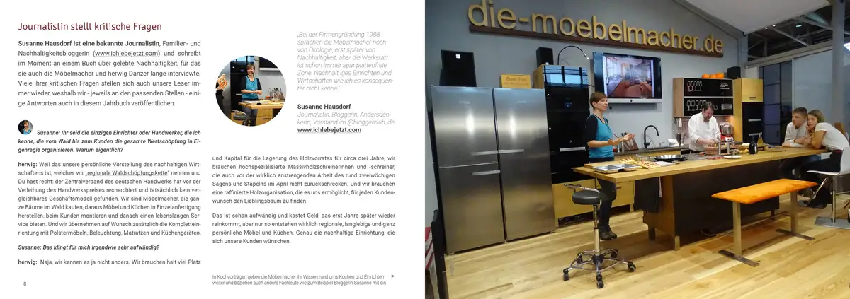 Auf stolzen 74 Seiten zeigen wir in unserem Möbelmacher-Jahrbuch 2019 unserer Einrichtungsarbeit vom Wald bis zum Kunden mit dem Schwerpunkt auf Nachhaltigkeit.