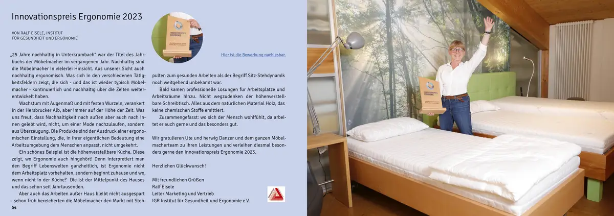 Vielen Dank, Euer Jahrbuch ist wieder toll geworden - die möbelmacher trotz 27 Jahren, jung, innovativ, kreativ und… total modern, da regional und umweltbewusst - vielen Dank