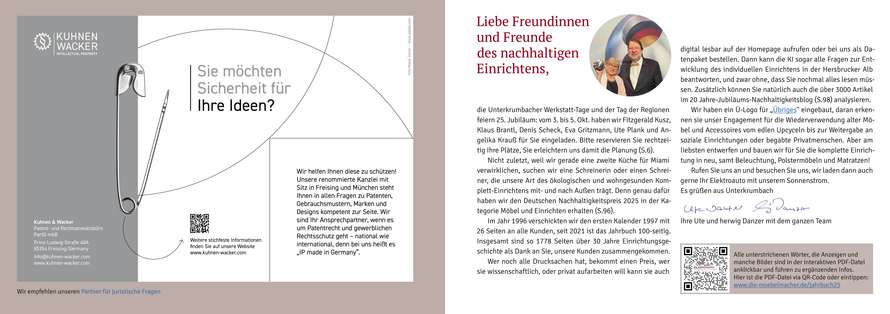 Auch das 30. Jahrbuch ist der Dank an Sie, unsere Kunden. Wieder kommen auf unseren hundert Seiten wichtige und interessante Zusammenhänge zur Sprache und wie immer bitten wir Sie um das Ausfüllen dieses Fragebogens. Wer zusätzlich fünf von acht Mogeleien im Wimmelbildentdeckt oder noch alle 30 Jahrbücher zu Hause hat, kann wertvolle Preise gewinnen, aber ein Brotzeitbrettchen und unser neuer Bleistift „Sinnstifter“ sind allen Mitmachern sicher. Sie könnten noch viel mehr über die spannenden Hintergründe unserer Arbeit erfahren, wenn Sie dieinteraktive pdf-Dateiöffnen.