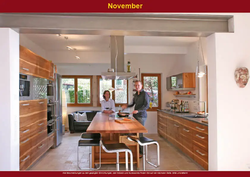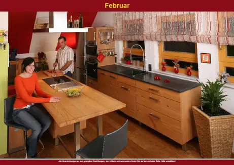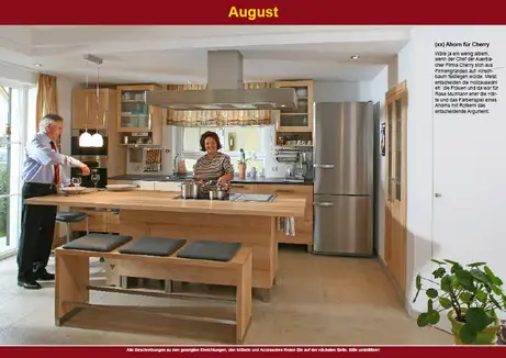 Wieder wurde das Jahrbuch ein wenig Küchenlastig, einfach, weil wir so viele schöne Massivholzküchen gebaut haben, von denen wir gar nicht alle zeigen konnten. Klar, dass die Küche aus Ahorn von Familie Malygleich im Januar erscheint, weniger, weil es sich um nicht ganz unbekannte Nürnberger Einwohner handelt, mehr, weil die Küche durch die Kombination von Ahorn, Schiefer und Edelstahl was Besonderes ausstrahlt. Wie bei den meisten unserer Kunden entsteht diese Atmosphäre einfach, weil Menschen, die gerne kochen sich auch gerne mit und in der Küche beschäftigen. Der Rest ist einfach sorgfältige, manchmal auch lange Planung und ebenso genaue, wie termingerechte Ausführung. Ulrich Maly schrieb uns dazu: