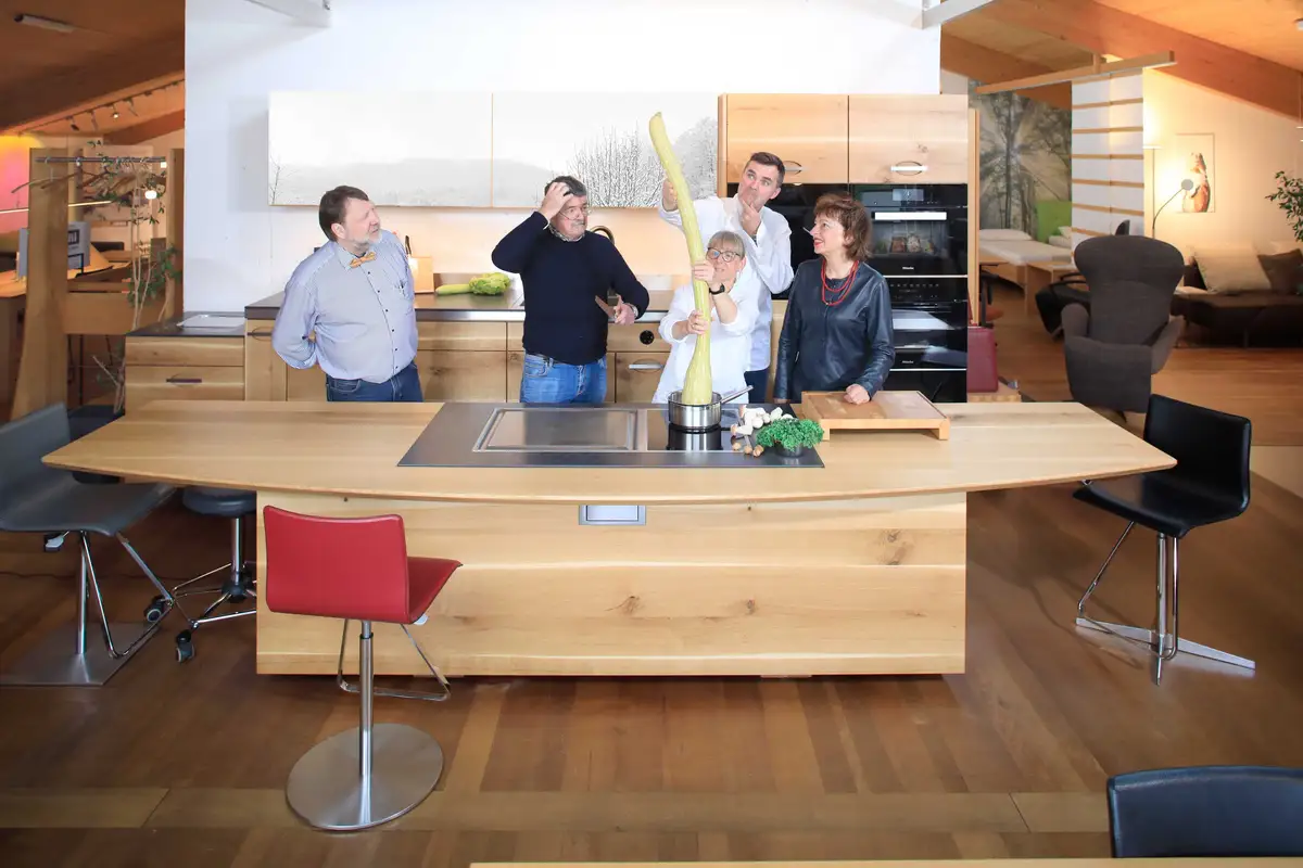 Dabei geht es nicht nur um die perfekte Küche, sondern auch um regionale Wirtschaftskreisläufe, feine Lebensmittel, verantwortungsbewussten Einkauf. Außerdem erklären die Köchinnen und Köche wichtige Tipps zum Kochen allgemein und wir zum Kochen in der Massivholzküche.