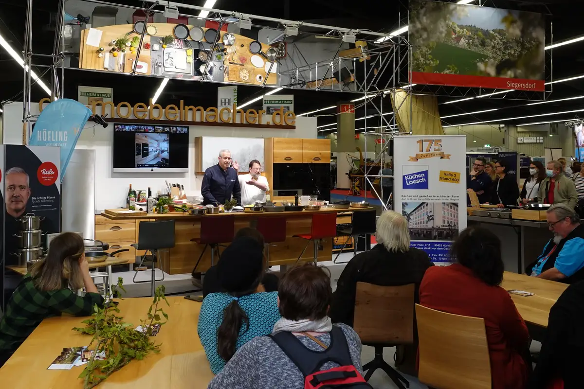 Unsere neue Massivholz-Showküche (höhenverstellbar) wird diesmal am Gemeinschaftsstand des Nürnberger Landes in Halle 1 stehen (direkt in der Halle hinter dem Haupteingang) und täglich um 12:00 Uhr kochen wir mit den Köchinnen und Köchen von „WIRte mit Werten“, um 15 Uhr mit den Mitgliedern von „Heimat auf´m Teller“.
