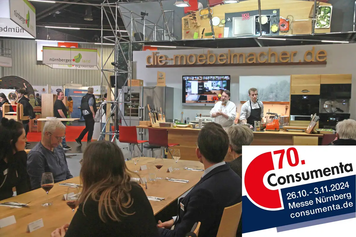 Während der Consumenta 2024 (26.Okt. bis 3.Nov.) erwarten wir Möbelmacher Sie mit "WIRten mit Werten" und "Heimat auf´m Teller"
