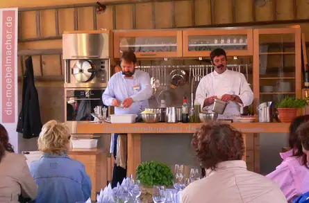 Jeweils um 11:00 oder um 15:00 Uhr werden Sie gemeinsam mit Spitzenkoch Stefan Rottner vom Land- und Gashaus Rottner und Ernährungsexperte herwig Danzer von den Möbelmachern einen Teil der Speisekarte des Messerestaurants "Die regionale Versuchungsküche" vorkochen.