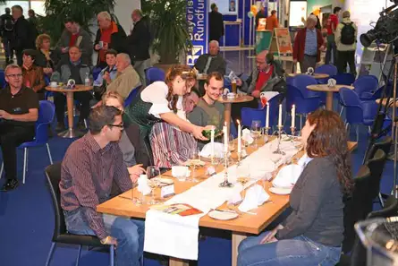 Wir kochen mit unsern Spitzenköchen (ausschließlich) zwei mal am Tag (11:00 und 16:00 Uhr) in unserer Miele-Titan-Massivholz-Möbelmacherküche am Stand des Bayerischen Rundfunks. Einen anderen Stand haben wir in diesem Jahr nicht besetzt.
