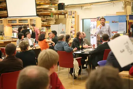 Diskussionsabend "Weltrestaurant": Initiativkreis Holz aus der Frankenalb macht die Methode Weltcafe´ kundentauglich