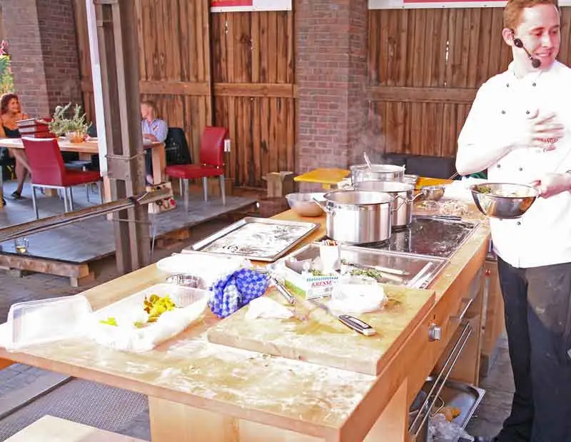 Seit die Geräte auf den Markt kamen, gab es keine freie Showküche mehr. Deshalb haben wir einen Kirschbaumcontainer gebaut, den wir auch schon für große Kochveranstaltungen verliehen haben.