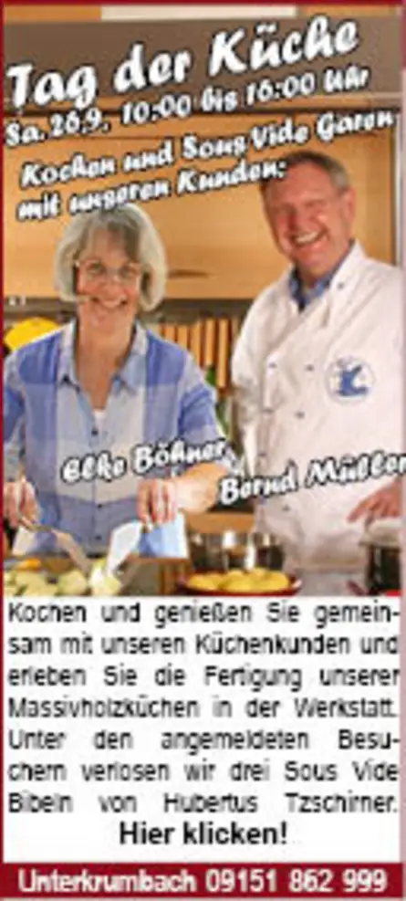 Weil die Planung der unterschiedlichen Sous Vide Gerichte nicht leicht ist würde wir uns über Ihre Anmeldung via Telefon 09151 862 999 oder email freuen (info@die-moebelmacher.de) und zum Dank verlosen wir unter den angemeldeten Gästen drei Sous Vide Kochbücher von Hubert Tzschirner (50.-€).