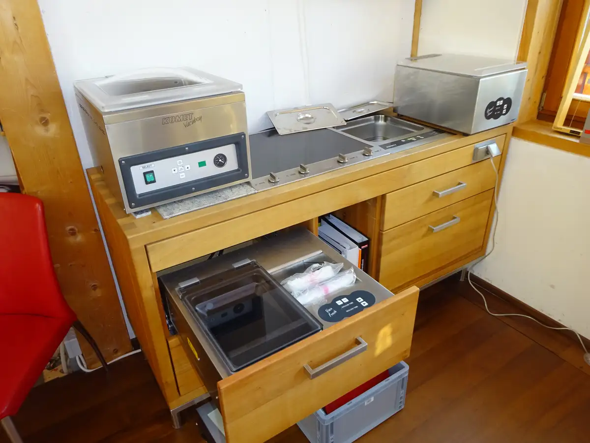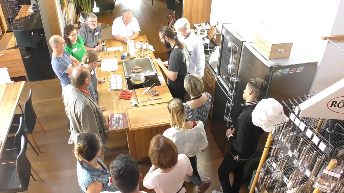 Von 10 bis 15 Uhr kochen wir gemeinsam mit neuen Gästen und erfahrenen Kunden und testen die beiden neuen Showküchen auf Praxistauglichkeit. Denn was nützt die schöne neue Küche, wenn die Reinigung aufwändig ist, die Bewegungsabläufe nicht stimmen oder die Geräte nicht das können, was sie sollen? Unser Küchen beweisen, dass sie professionelle Werkzeuge zum Kochen aus dem Massivholz der Region sind. Die Backöfen und Dampfgarer von Miele, die Kombinationskochfelder aus Induktionkochfeld, Wok und Tepan Jaki von Jaksch und die Thermalisierer und Vakuumierer von Komet zeigen im harten Einsatz, was sie können.