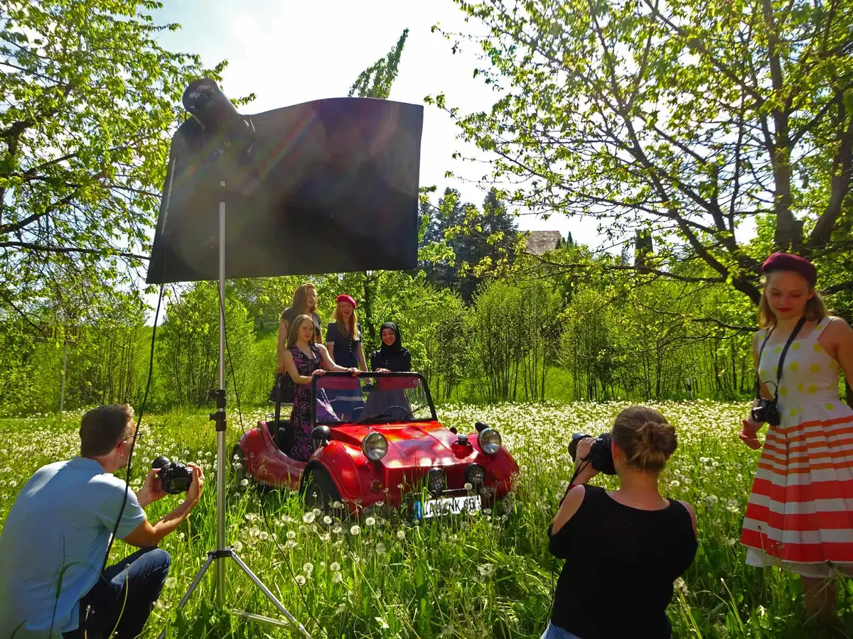 Wir freuen uns, dass sich an unserer Filmgala die Geburtsjahrgänge 1960 bis 2000 vertreten sind. Letztere haben mit dem Buggy schon mal geübt (die Kunstlehrer und Künstler Michael Schober und Ulf Geer organisierten das dankenswerterweise) und werden tolle Fotos von Ihnen vor den Oldtimern, oder wo auch immer machen.