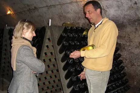 Andreas Kirsch war ein Klassenkamerad von herwig Danzer und jetzt macht er in Naumburg an der Saale (Unstrut) Sekt im Champagnerverfahren. Natürlich muss es zur Filmgala der Sekt "Von der Henne" sein.