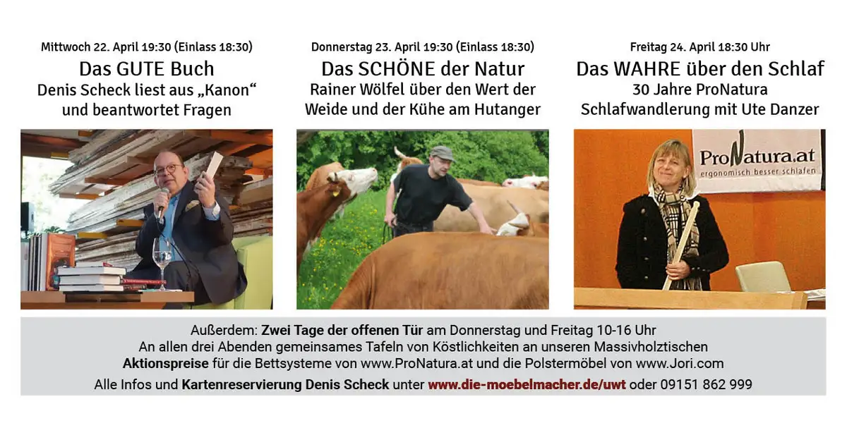 Die Möbelmacher bilden mit dieser ungewöhnlichen Veranstaltungsreihe ein offenes Forum, dass dem Gast zusätzlich zum Genuß auch Hintergrundwissen bietet. Das bringt mehr Freude an der heimischen Kulturszene und fördert das Bewußtsein für handwerkliches Können.