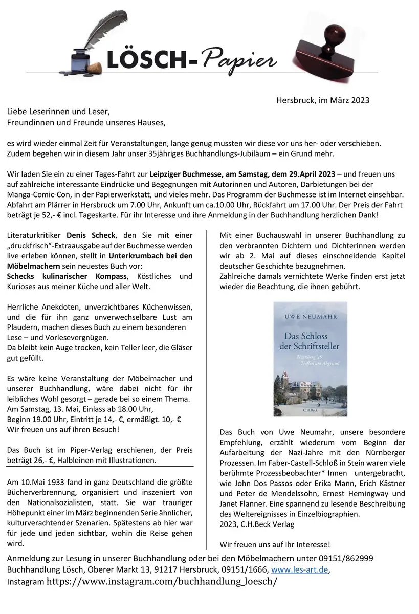 Der Rundbrief der Buchhandlung Lösch heißt Lösch-Papier