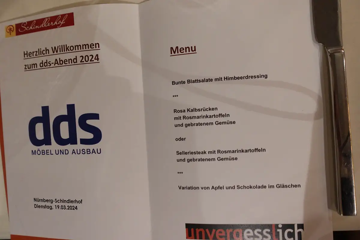 Es war der dds-Abend anlässlich der Nürnberger Messe Holz-Handwerk, zu dem hauptsächlich die Anzeigenkunden, Verbandsvertreter, die Nürnbergmesse und Schreiner als schmückendes Beiwerk eingeladen wurden. Tatsächlich war neben dem feinen Essen die Preisverleihung der Hauptakt der Veranstaltung, über den wir im Blog ausführlich hier berichten. Es war ein – passend zum Titel „Meine wunderschöne Werkstatt“ – wunderschöner und interessanter Abend, wir genossen noch das schöne Zimmer im Schindlerhof und ein grandioses Frühstück mit ebensolcher Bedienung.