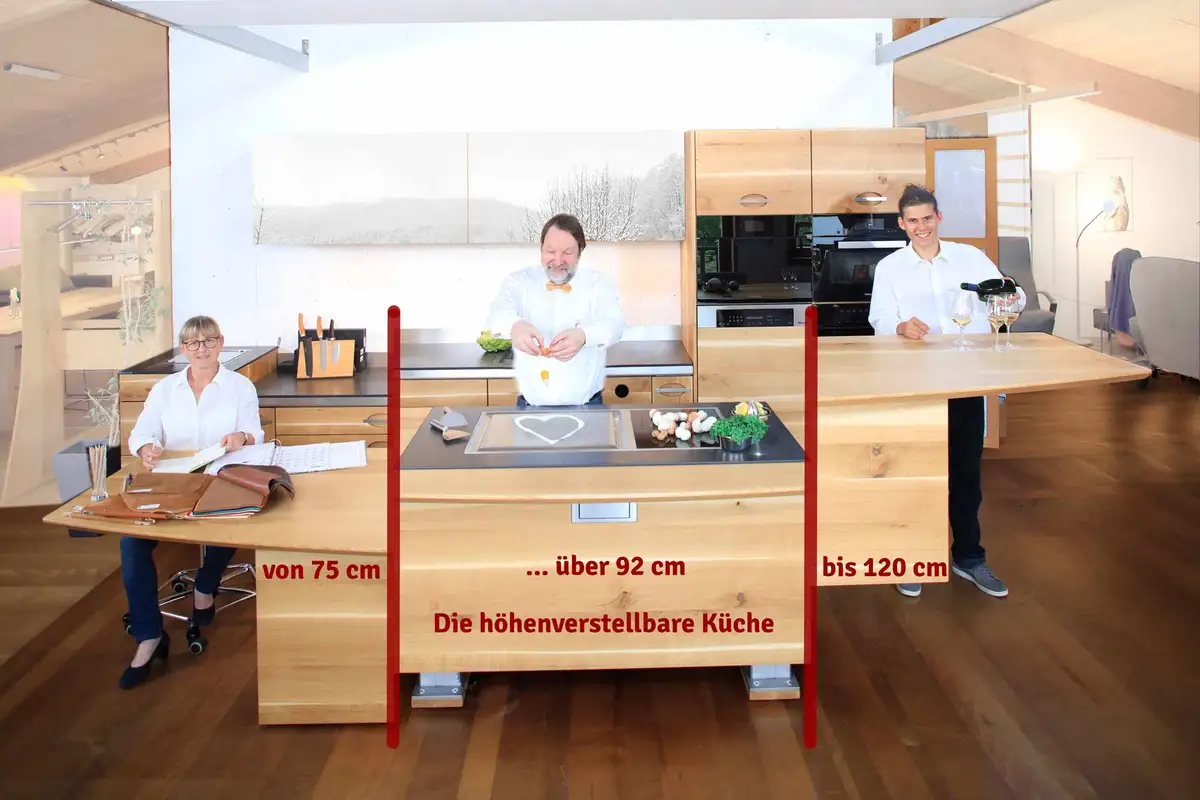 Die höhenverstellbare Küche, die auch alle Schränke mitnimmt, gibt es nur bei den Möbelmachern