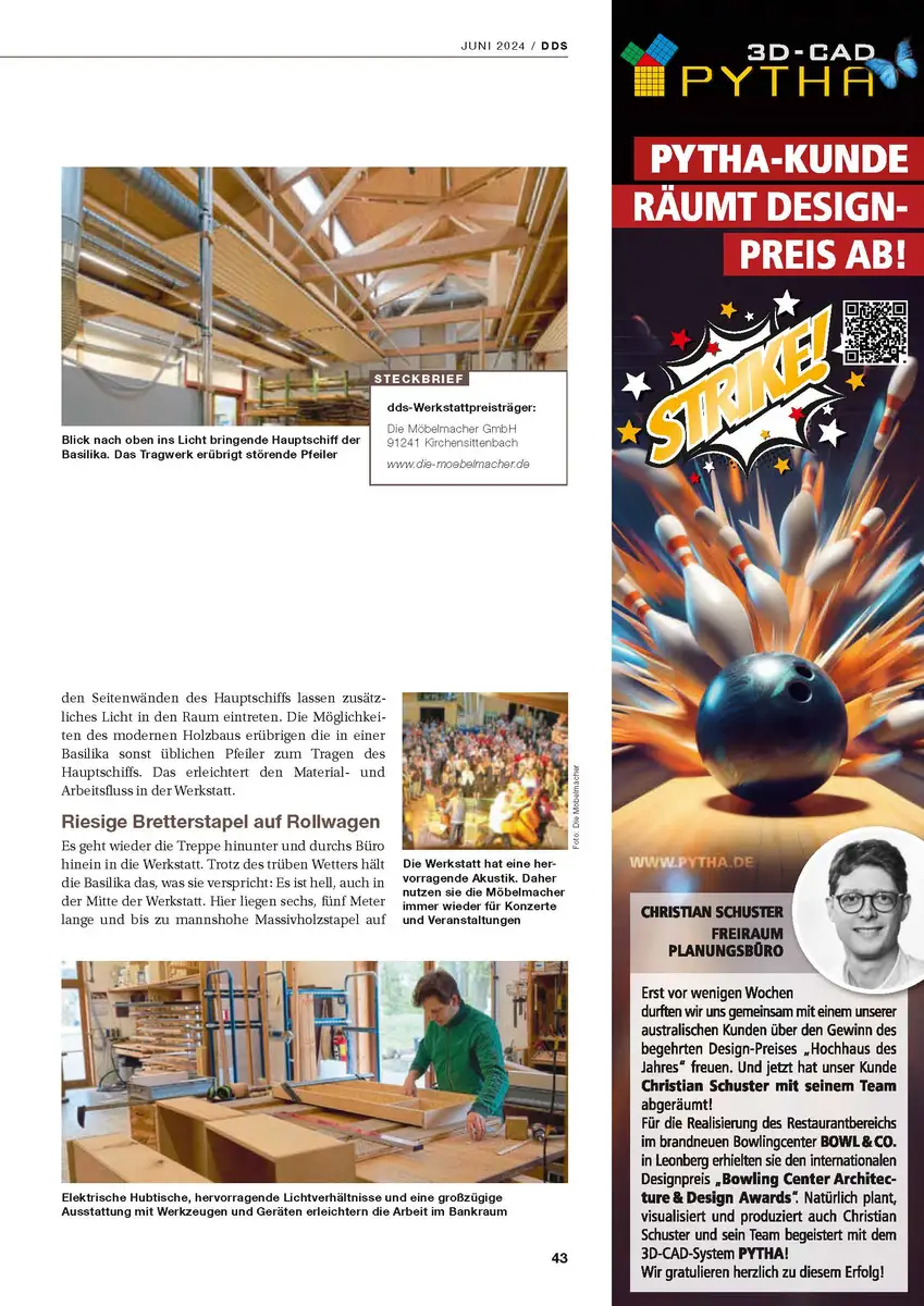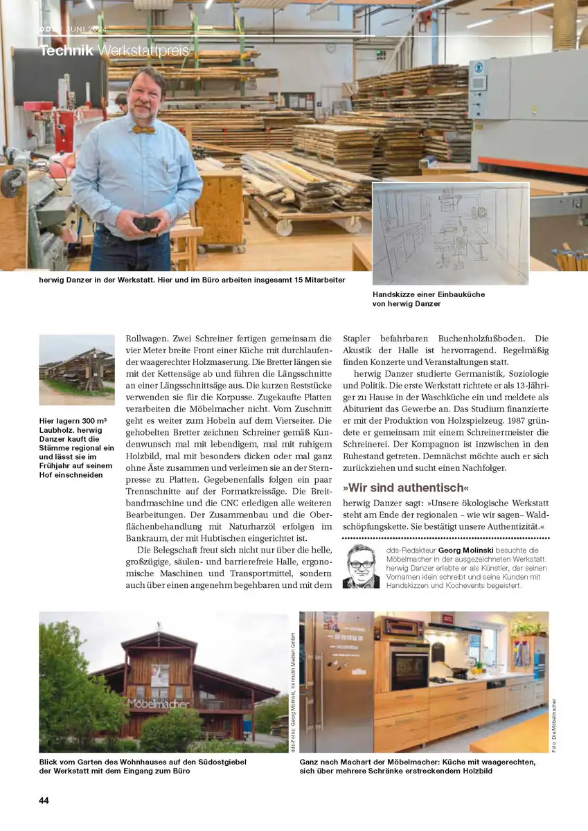 Die Fachzeitschrift dds (der deutsche Schreiner) berichtet über die schönste Werkstatt Deutschlands (Massivholzspezialist)
