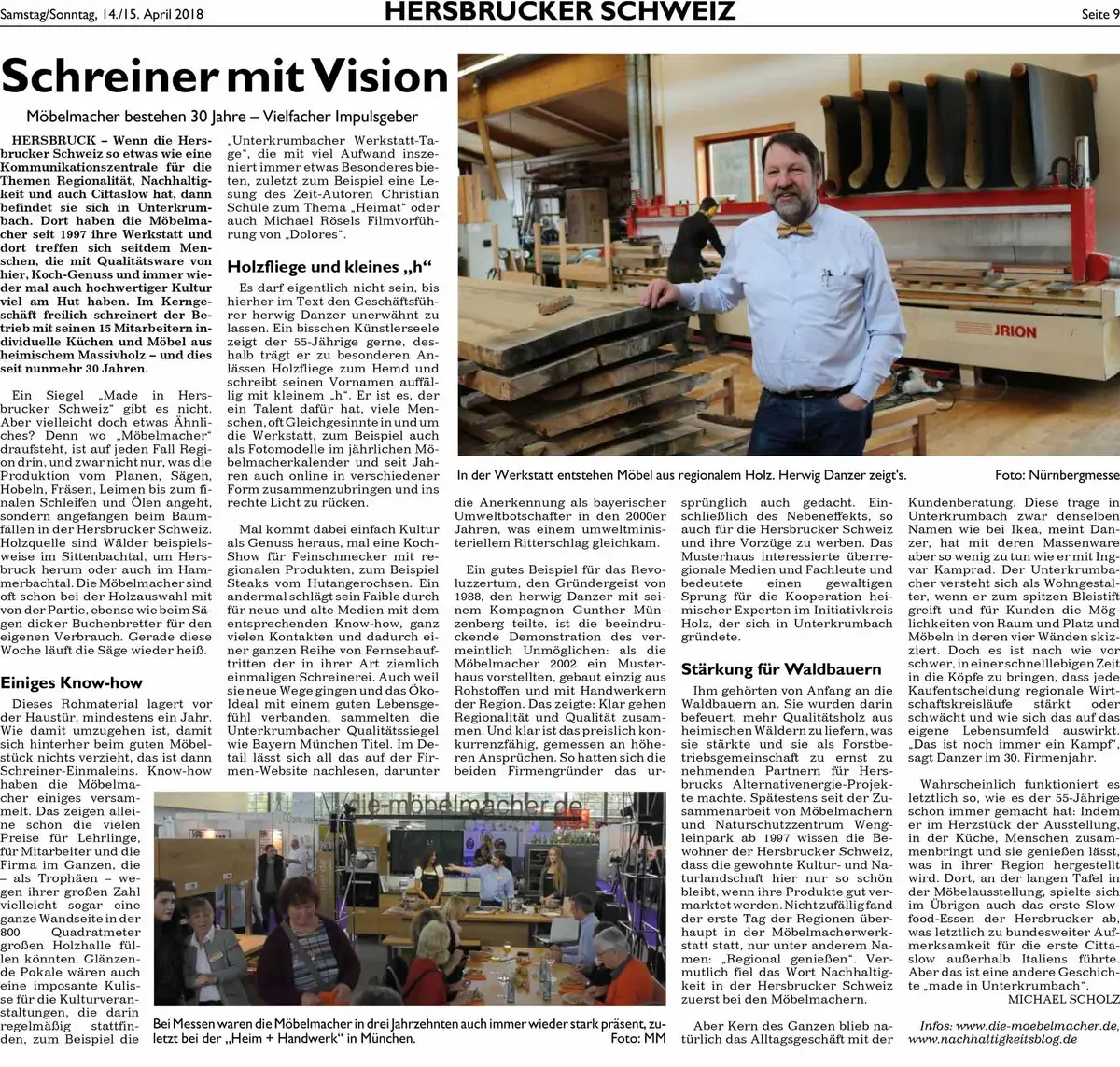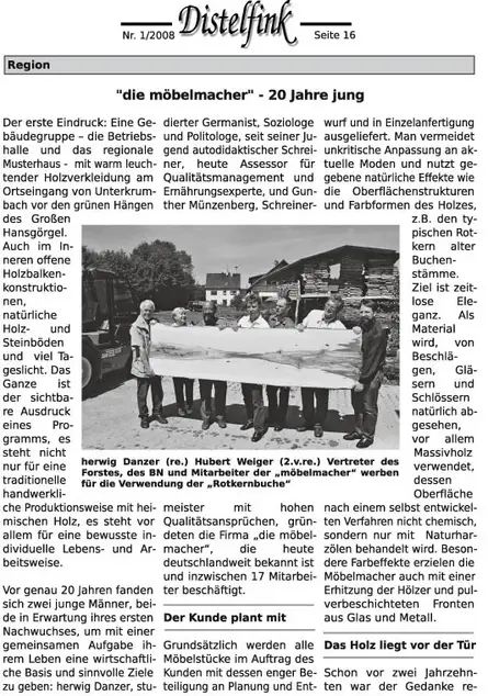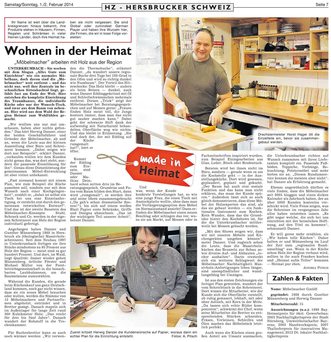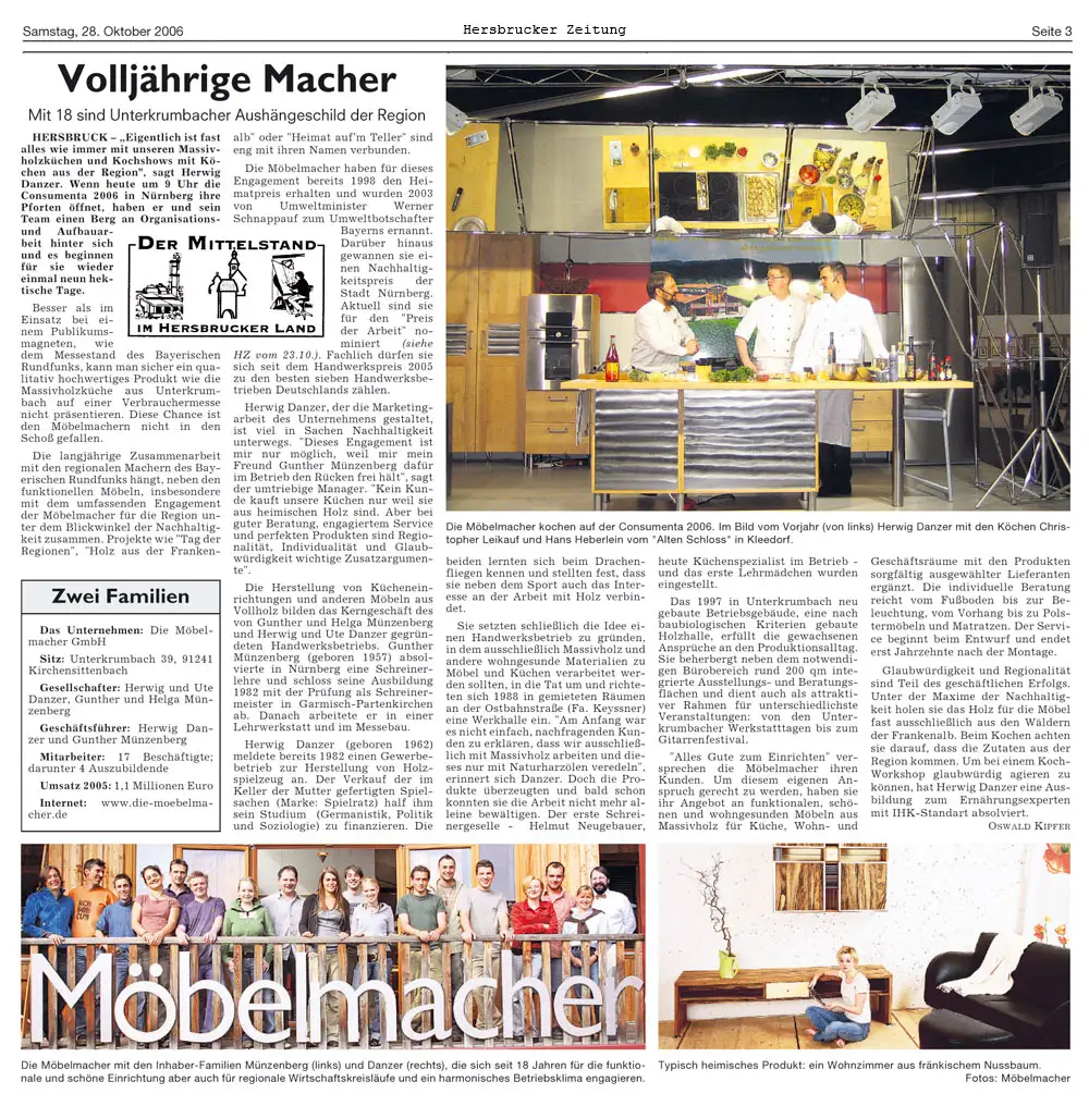 In der Wochenendausgabe vom 28.10.2006 ist in der Hersbrucker Zeitung im Rahmen der HZ-Serie "Der Mittelstand im Hersbrucker Land" ein Bericht über uns Möbelmacher erschienen.