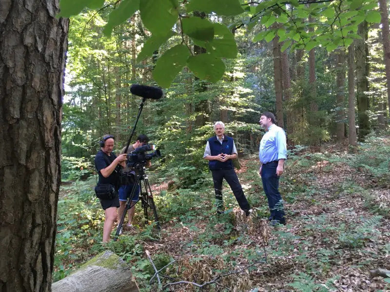 Roland Zimmermann vom Bayerischen Rundfunk hat mit Kameramann Christian Demas und Tontechniker Frank (Schnitt D. Lehmeyer) einen Beitrag über unsere regionale Waldschöpfungskette gedreht. Eingeladen war auch Richard Mergner, Vorsitzender des Bund Naturschutzes in Bayern, denn die Aktion "Rotkernige Buche" feiert 20-jähriges Jubiläum.