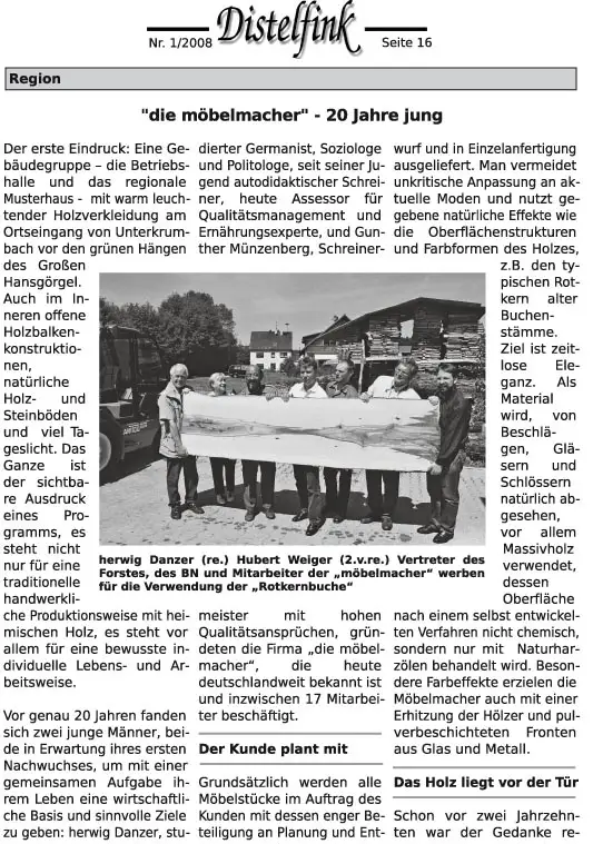 Bund Naturschutz Nürnberger Land berichtet im Distelfink über die Möbelmacher