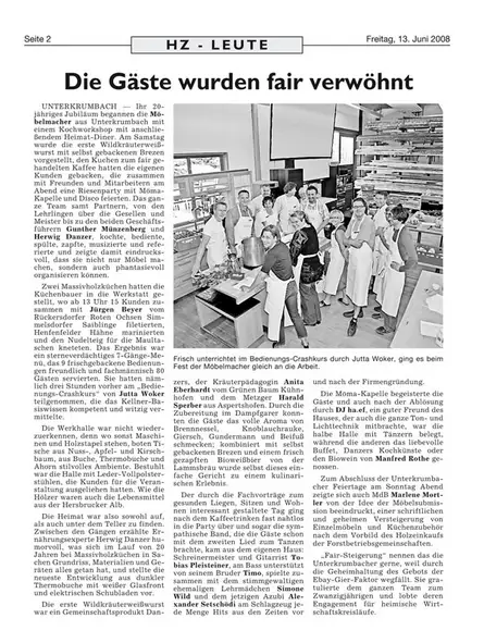 Die Hersbrucker Zeitung berichtete am 13.06.08 sehr ausführlich über unser 20-Jähriges Jubiläum.