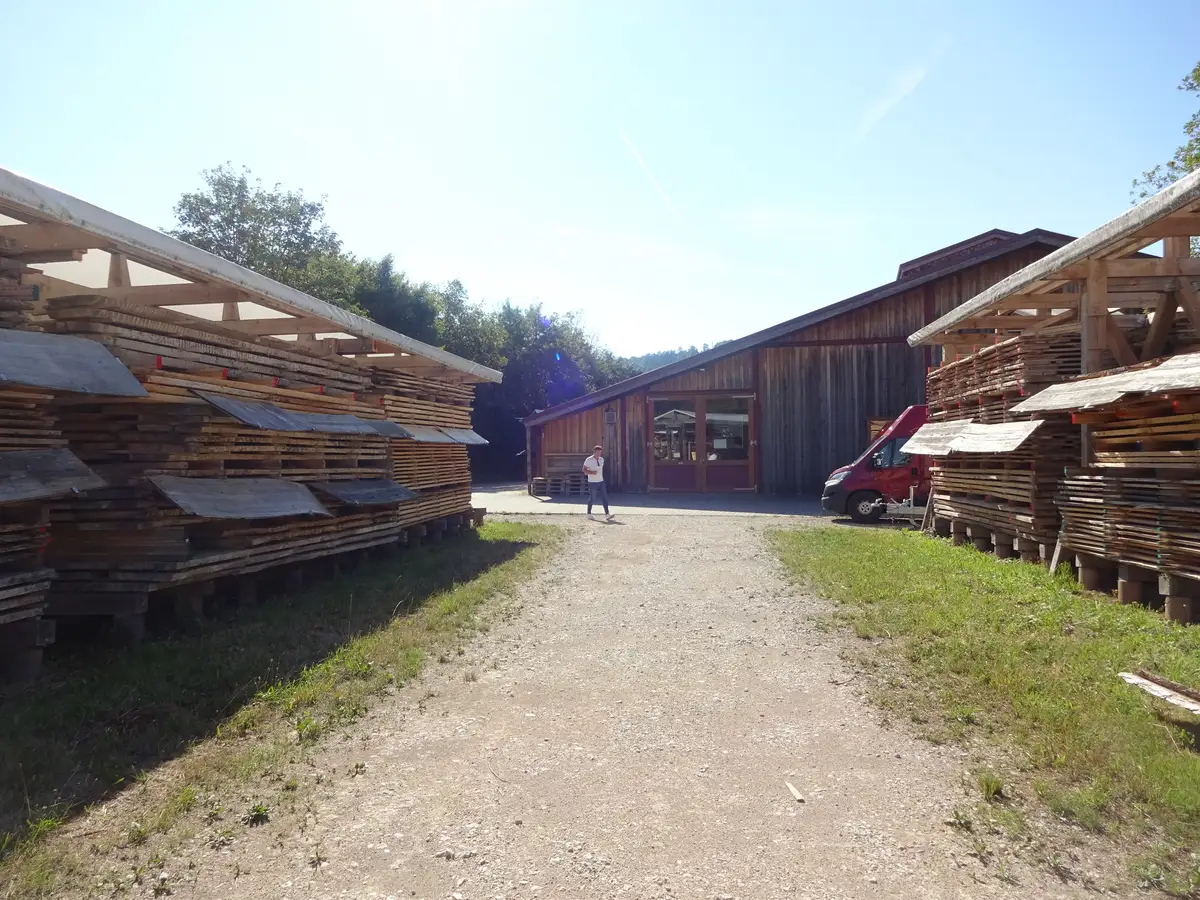 Die regionale Lieferkette mit heimischem Holz haben die Möbelmacher vor 25 Jahren vor allem aus Qualitätsgründen gestartet. Im hauseigenen Lager trocknen, entrinden und sägen sie das Holz so wie sie es brauchen. Vom Handel hätte herwig Danzer das Holz nicht bekommen. Die Devise lautete damals: Billigholz auf dem Weltmarkt einkaufen. Als Absicherung gegen mögliche Lieferschwierigkeiten war heimisches Holz seinerzeit nicht gedacht. Doch jetzt ist es ein entscheidender Vorteil, denn diese regionale Lieferkette reißt trotz weltweiter Holzkrise nicht ab. Die Möbelmacher müssen keine Aufträge absagen. "Die Kunden sind ganz besorgt und fragen uns: habt ihr noch genug Holz?" berichtet herwig Danzer. "Ja, wir haben noch genug." Das Lager der Schreinerei sei für die kommenden fünf Jahre gefüllt. Jedes Jahr werde es wieder aufgefüllt.