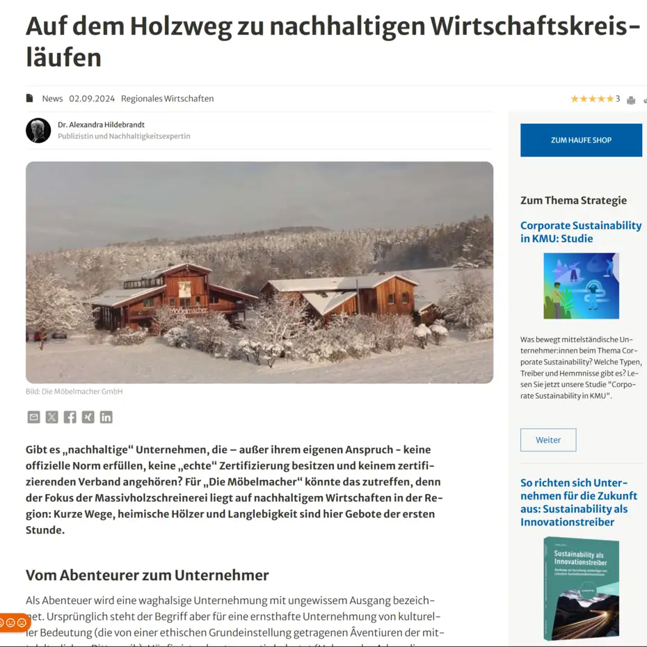 Haufe Sustainability, das Portal für Nachhaltige Unternehmensfürhung berichtet über die Möbelmacher
