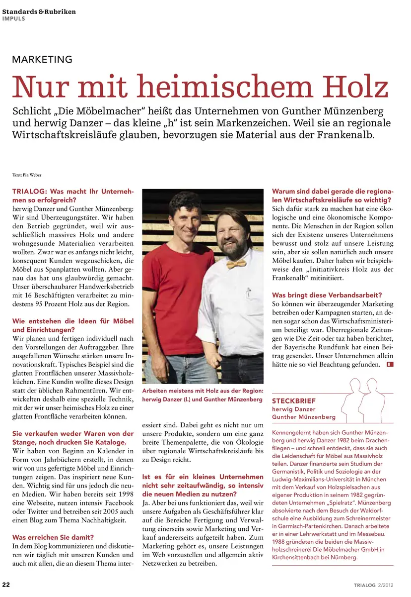 Trialog, das Magazin der Datev hat ein Interview mit den Möbelmachern über deren