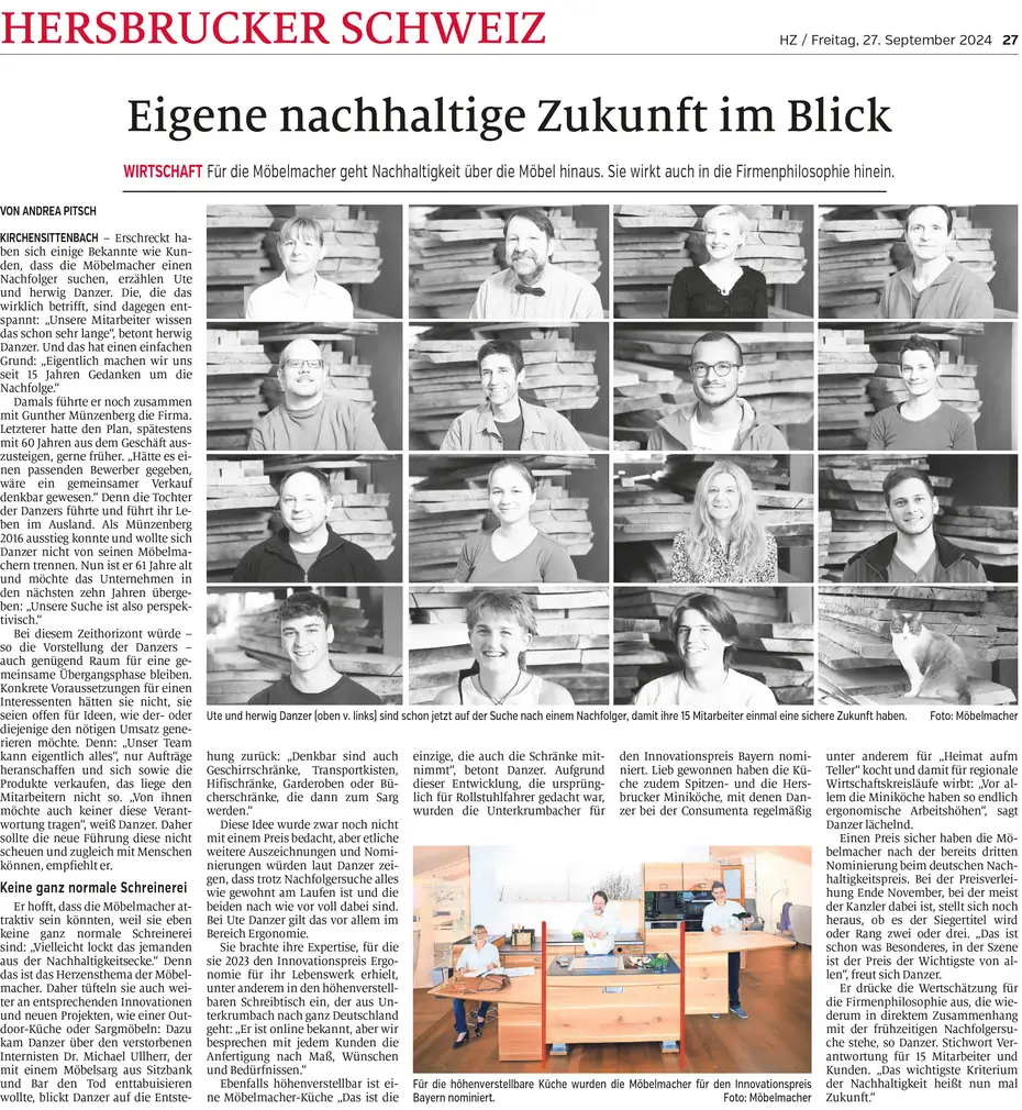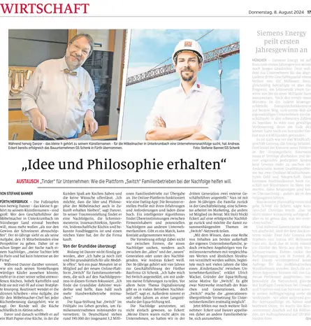 Andrea Pitsch in den Nürnberger Nachrichten über die Nachfolgersuche im laufe der nächsten 10 Jahre bei den Möbelmachern