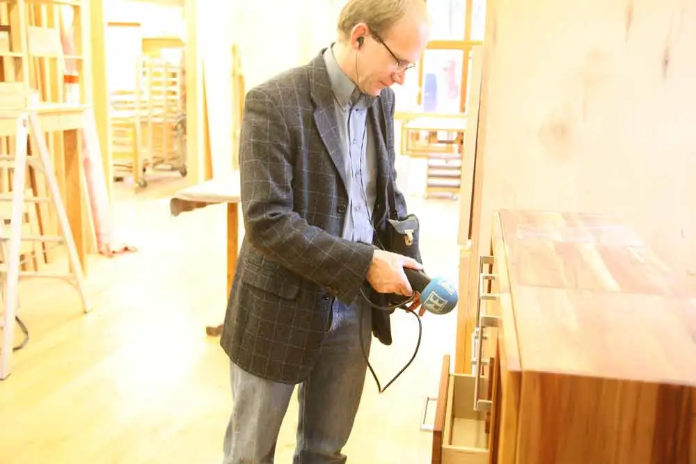Georg Molinski, Redakteur bei der besten Schreiner-Fachzeitschrift Deutschlands, besuchte uns ein paar Wochen nach der Preisübergabe und fotografierte und schrieb einen Artikel über unsere Werkstatt, den man hier als pdf downloaden kann. Schon bei der Preisverleihung fragte er unsere Meisterin Sophia Wagner, wie man denn aus Massivholz Möbel bauen könnte? Da wir im nächsten Jahrzehnt auf der Suche nach Nachfolgerinnen oder Nachfolgern sind, wäre es schön, wenn er von vielen interessierten Kollegen gelesen würde.