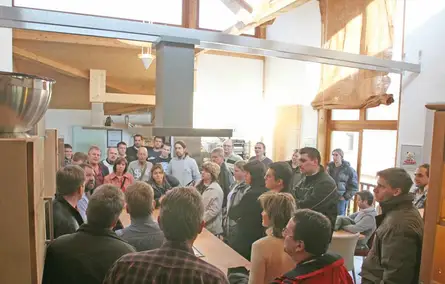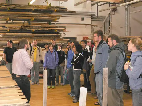 Studenten von Prof. Knox aus Virginia informierten sich in der Werkstatt und dem regionalen Musterhaus über regionale Wirtschaftskreisläufe.