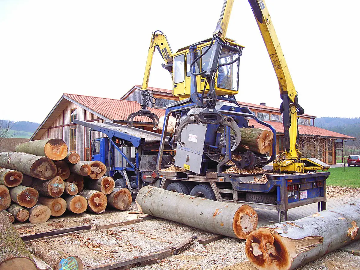 Die mobile Säge steht einmal im Jahr bei uns auf dem Gelände