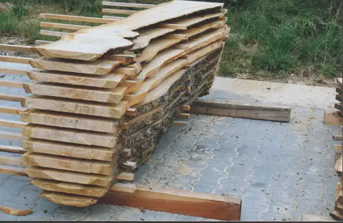 Nur sorgfältigste Schlichtung mit getrockneten Stapelleisten (ein Job für Hochstapler) sichern den Werterhalt für die nächsten 1 bis 5 Jahre im Außenlager.