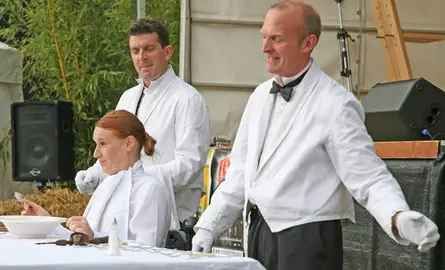 Um 16 Uhr werden die Köchinnen und Köche schon langsam müde vom Teigkneten und Saiblingröllchen rollen, aber der Service beginnt gerade erst mit der Arbeit. Wer Lust hat, einen ganzen Abend nette Menschen zu bedienen, bekommt auch eine Ausbildung: im Crashkurs lernt man alles wichtige für den heutigen Abend, aber vor allem fürs Leben: Tisch decken, Teller tragen, Abräumen, Lächeln, Lächeln und Lächeln, alles lernen Sie von unseren Profis, wenn Sie sich rechtzeitig anmelden.