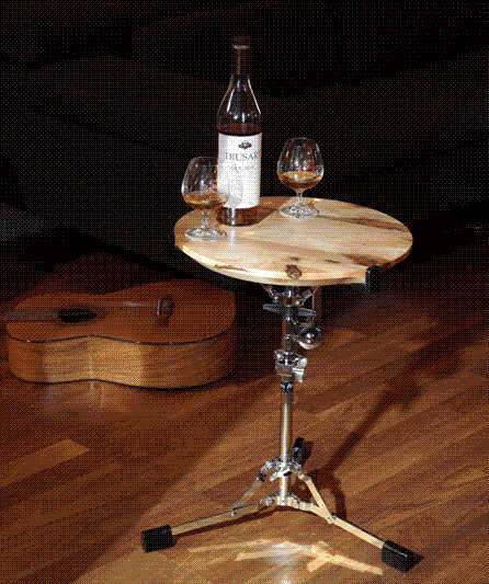 Der ultimative Couchtisch für Musiker - aus Massivholz mit Snare-Gestell