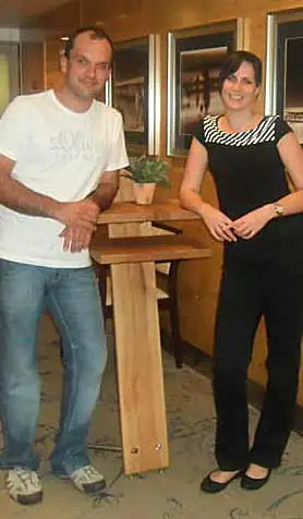 Diese höhenverstellbare Theke wird mit einem Akku sozusagen wireless betrieben