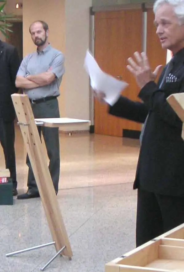Unser Stehpult ist nicht nur leicht transportabel, höhenverstellbar und formschön, sonder ein Garant für begeisterte Zuhörer.