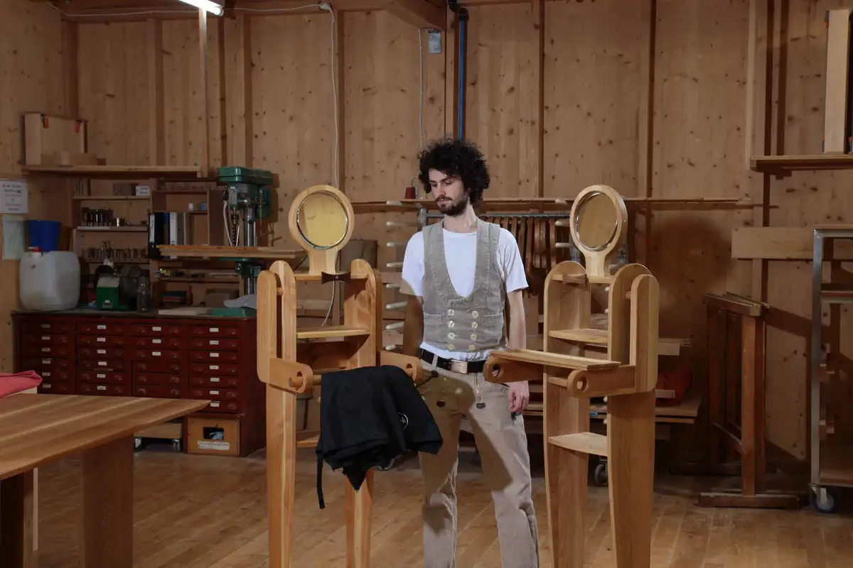 - Giovanni wurde aus dem massiven Holz der Hersbrucker Alb von den Schreinerinnen und Schreinern der Möbelmacher liebevoll gefertigt.
