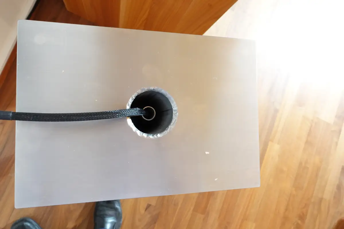 "Die Box steht auf massiven Metalltraversen mit eingeschraubten Spikes – die entsprechenden Unterlegscheiben gehören zum Lieferumfang für 6500 Euro das Paar. Das ist angesichts des Fertigungs- und Materialaufwands wahrlich nicht zu viel."