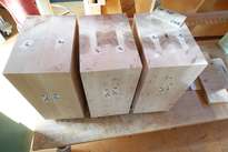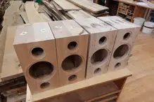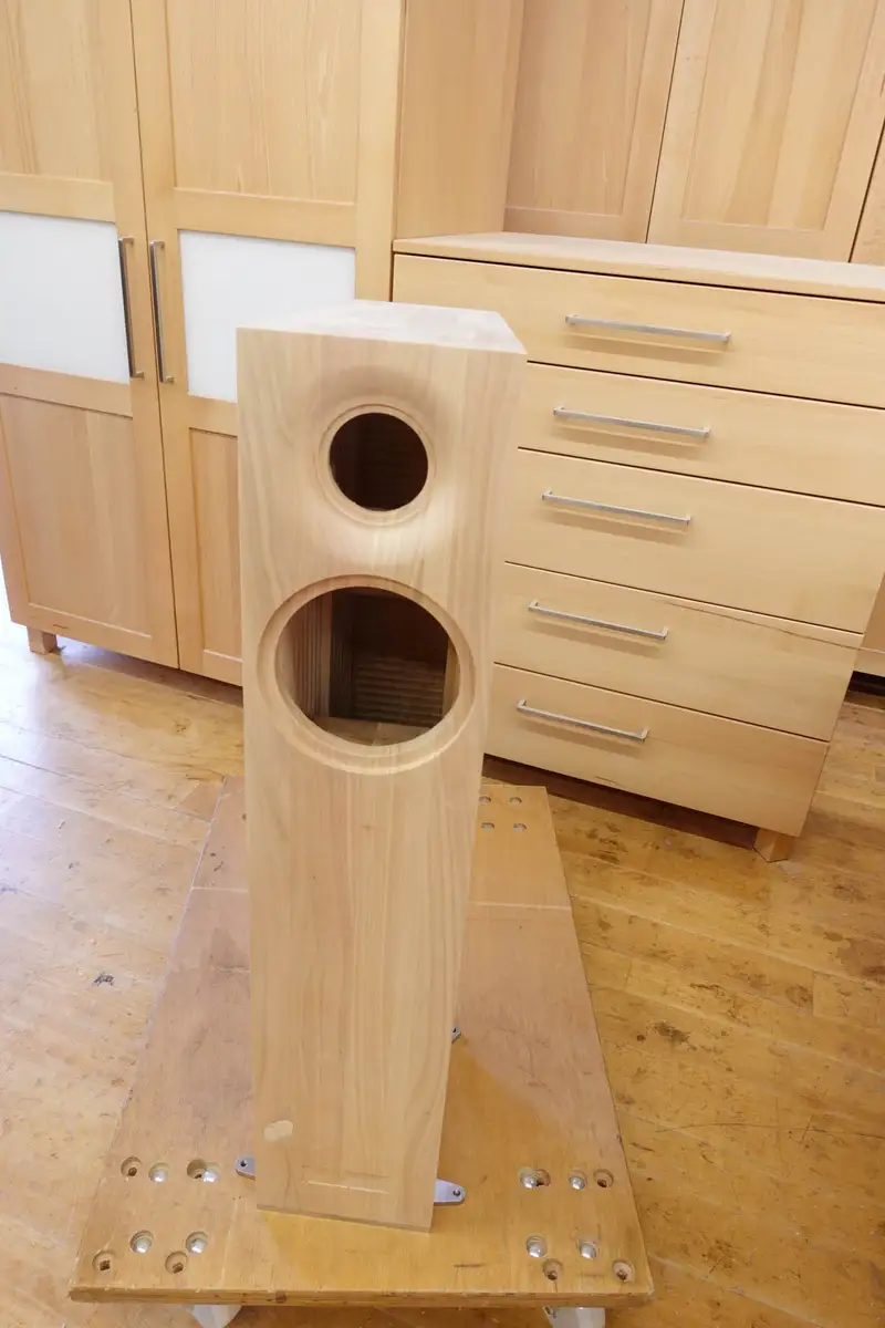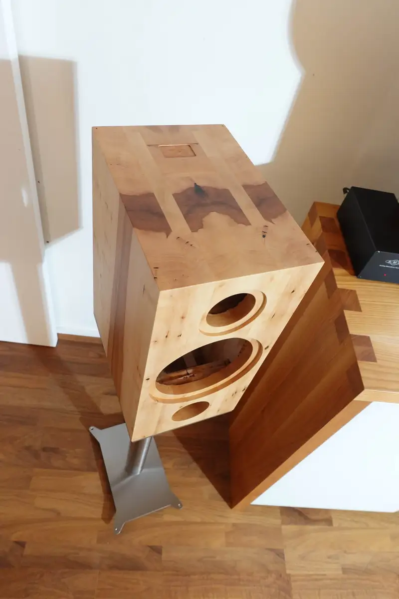 Sophia Wagner war die ausführende Meisterin und hat zusammen mit ihren Kolleginnen Christiane und Meret (daran waren zufällig wirklich nur Frauen beteiligt) die Boxen vom rohen Brett bis zum fertigen Gehäuse verwirklicht. Dann hat Andreas Steiner die Boxen selbst abgeholt und nach Wien zu Martin gefahren, auf dass aus den schönen Holzskulpturen echte Klangerlebnisse werden mögen, was gelang.