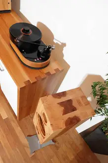Die erste nachhaltige Highend-Hifi-Anlage aus fränkischem Massivholz in Kirschbaum - Plattenspieler mit AMG und Boxen wie Verstärker mit der Wiener Lautsprechermanufaktur