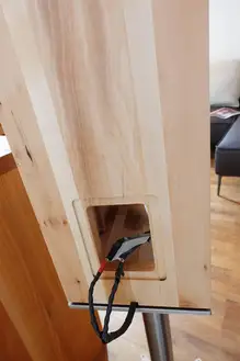 Frontfräsung für Hoch-, Mittel- und Hochtöner und das Firmenschild