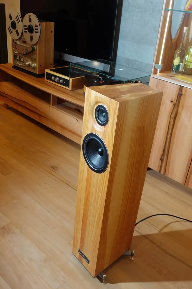 Technik und Preis unserer Stand-Lautsprecher Ella aus fränkischem Kirschbaum-Massivholz