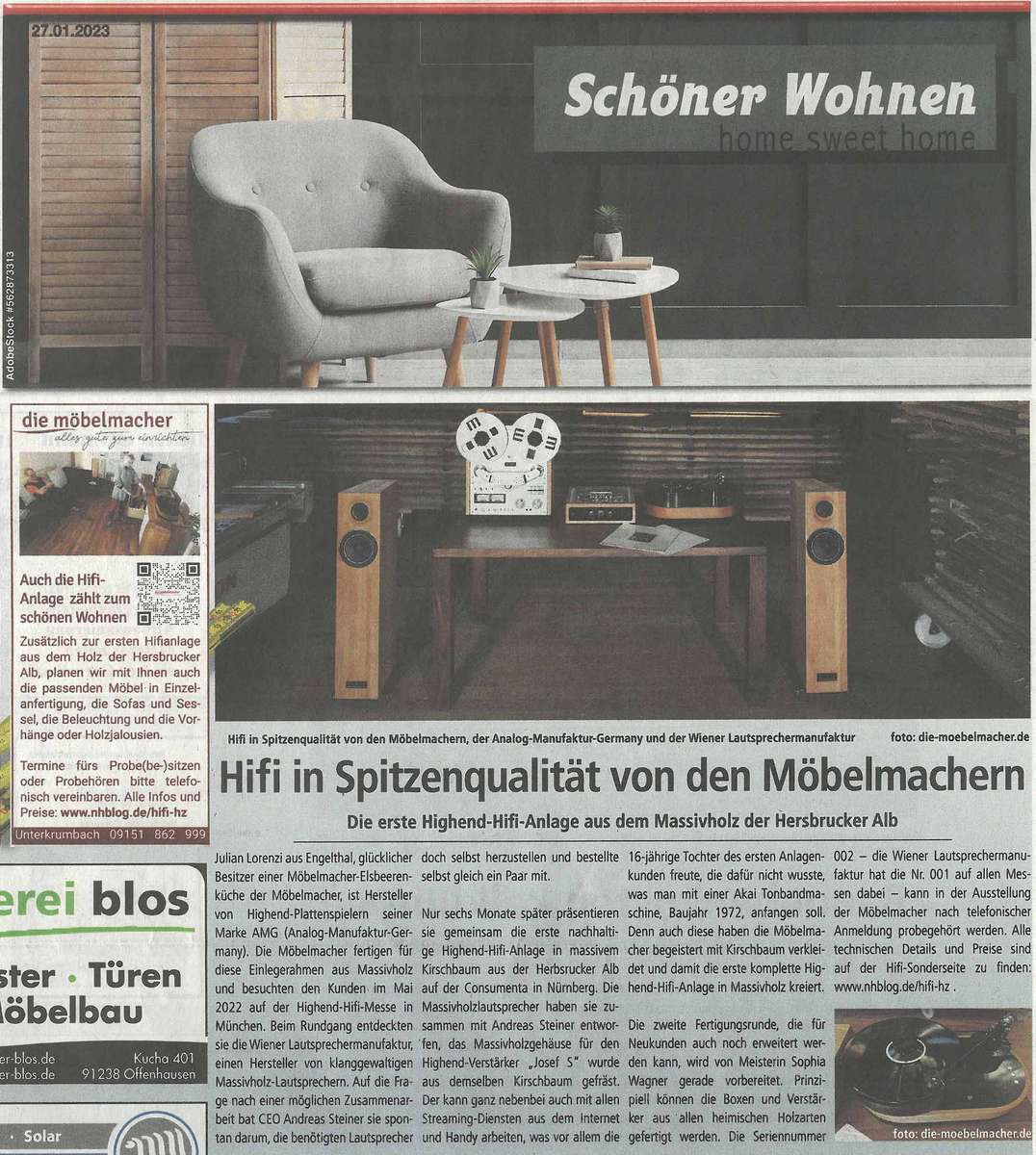 Lautsprecher und Verstärker aus dem Holz der Hersbrucker Alb in den Nürnberger Nachrichten